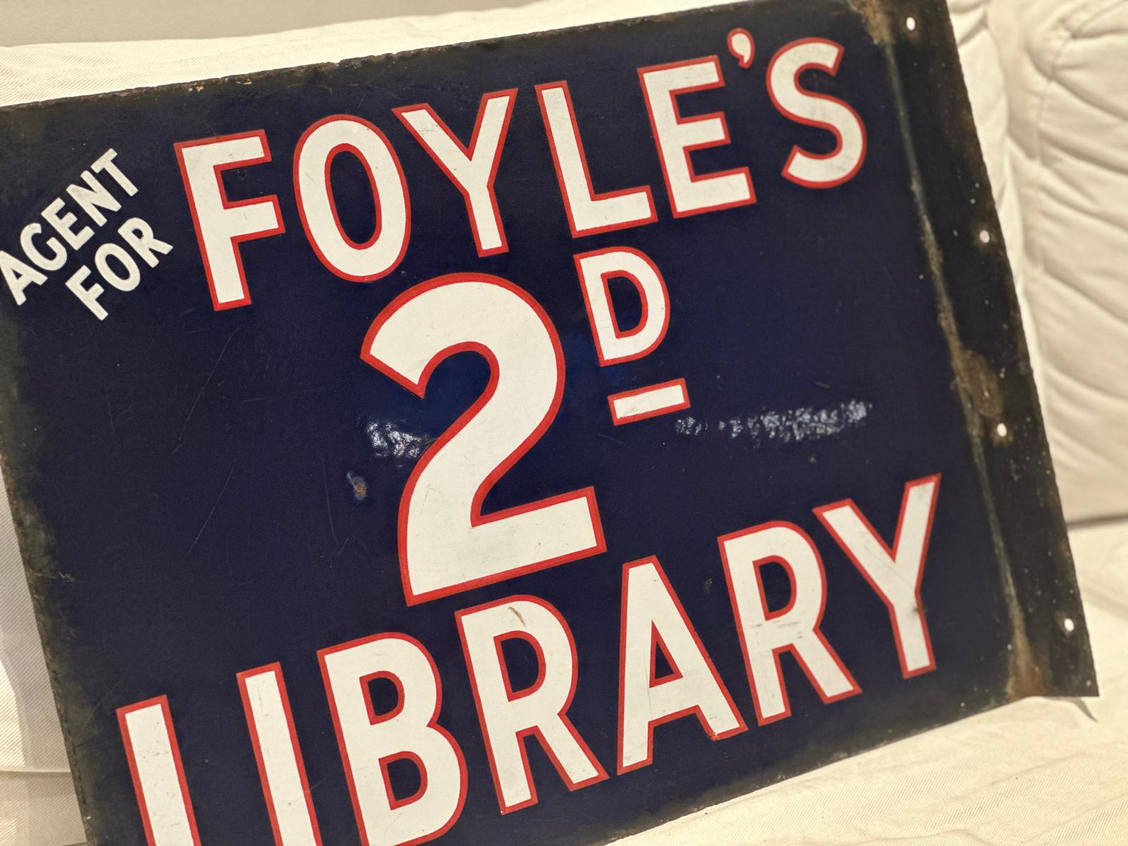 Vintage Foyles Library Sign – 2/D Lending Library Enamel Style Sign